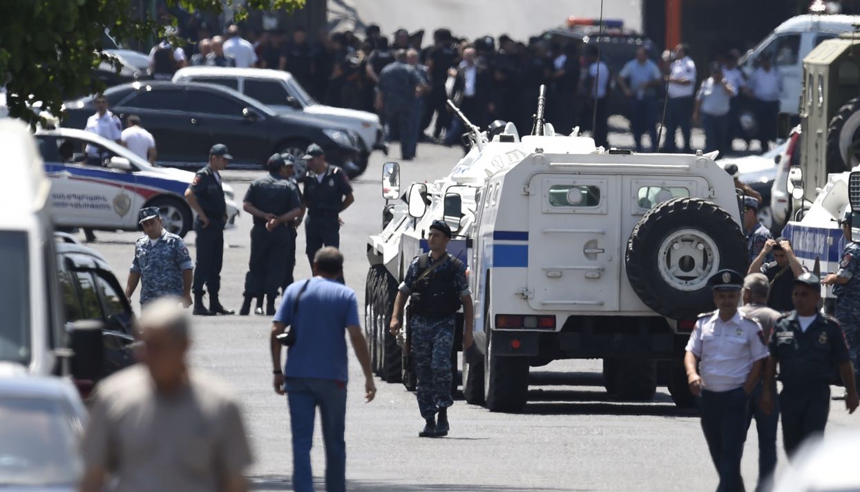 У здания полицейского участка была перестрелка, есть погибшие и раненые. По информации полиции, в результате перестрелки погиб замначальника полка патрульно-постовой службы Артур Ваноян, ранены Арам Ованнисян, Грачья Хостехдян и Гагик Мкртчян. Позже стало известно о четвертом раненом — полицейском видеооператоре. Двое раненых находятся в тяжелом состоянии, двое — в крайне тяжелом. Со стороны захватчиков никто не ранен.