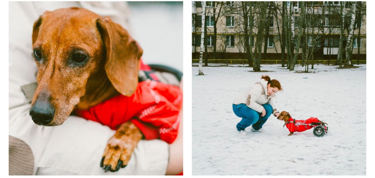 Ричард прожил тринадцать лет и умер совсем недавно, 29 мая. У него в восемь лет проявилась резкая дисплазия — лапы стали враскорячку, начали отказывать. Это раз. Во-вторых, он в том же году порвал связку. Мы сделали операцию и по совету врача нашли на сайте Animals Mobile поддержку-жилет. Год и три месяца я водила Ричарда на этой поддержке. Когда делали МРТ, наш врач удивлялся: «Я вообще не понимаю, как он у вас ходит». Вот только на одной любви он у меня и ходил. Еще мы с Ричардом ездили на иглоукалывание и на реабилитацию в бассейн, где он с инструктором занимался. Плавание для собак сейчас не какая-то роскошь — много клиник предлагают такой способ реабилитации. И даже если нет денег, нестрашно — у меня знакомый восстанавливал свою таксу после операции на водоеме на даче. Но в какой-то момент выяснилось, что у Ричарда две застарелые грыжи на позвоночнике. Прооперировали, он пошел на поправку, но обнаружилась проблема с почками. И, видимо, все вместе подкачало.