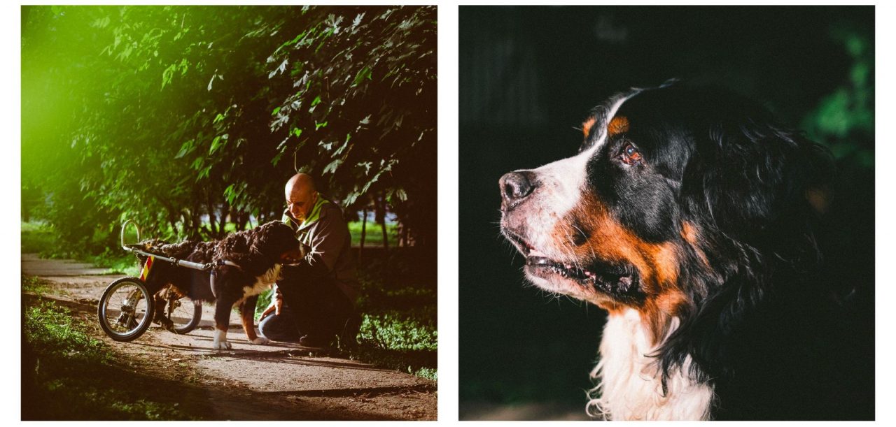 Сергей и бернский зенненхунд Полкан, 13 летФото: Мария Ионова-Грибина для ТД У нас нет никаких страшных историй: просто, когда Полкану исполнилось двенадцать лет, у него стали отниматься лапы. Коляску я нашел не сразу, где-то полгода Полкан, бедный, мучился, пока задние ноги еще действовали. Но с прошлого лета ходим, бегаем, гуляем. Однажды на меня женщина на улице напустилась, зачем я издеваюсь над собакой, запряг ее, — не поняла, в чем дело.