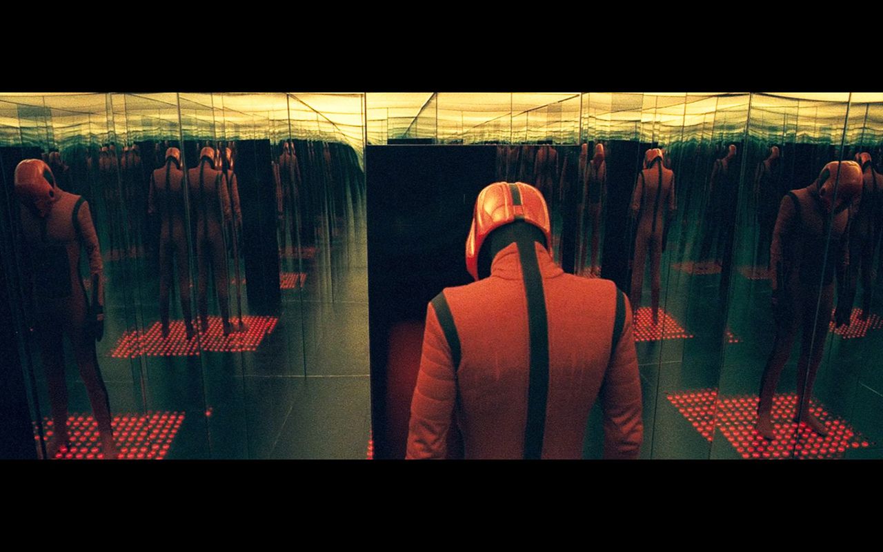 Воспалённый мозг пытается осознать происходящее, но Панос Косматос даёт только один молчаливый ответ: этот мир есть такой, какой он есть. Если в условных «Звёздных войнах» зрителя нагружают информацией о каждом винтике в механической ноге AT-AT, то «Чёрная радуга» декларативно заявляет: во-первых, не всё нуждается в объяснении, а во-вторых, изображение, ритм и рассеянная в воздухе атмосфера говорят о мире не хуже всяких «путеводителей по галактике» и персонажей-болтунов. «По ту сторону чёрной радуги» — это антиистория, картина-ловушка, комната без двери, «фильм-в-себе» — разумеется, неподготовленного зрителя он будет бесить до бруксизма и нервной трясучки.«По ту сторону чёрной радуги» — фильм настолько визуальный, что каждую минуту экранного времени он рискует стать даже не «артхаусом» (что бы это слово ни значило в 2016 году), а чистым экспериментом, видеоартом. Зарубежная пресса сравнивала фильм с космическим шедевром Стенли Кубрика «Космическая одиссея 2001 года» и «Солярисом» Андрея Тарковского, хотя с тем же успехом можно провести аналогию с «Фазой IV» (1974) — единственным полнометражным фильмом Сола Басса, графического дизайнера, автора фирменного леттеринга к «Головокружению» Альфреда Хичкока и логотипа AT&T. Балом здесь правит retrowave-стилистика — и это за пять лет до нашумевшего «Kung Fury» Дэвида Сандберга и всевозможных вариаций на тему а-ля видео † Carpenter Brut † «TURBO KILLER» Сета Икермана (который вот-вот дебютирует c полнометражным «Икерманом»). Ностальгия по 1980-м, пружинистый и гнетущий синт-поп Black Mountain (которые вдохновлялись Tangerine Dream и музыкой Джона Карпентера), неоновые цвета и мягкие контуры, аутентичный дизайн в духе автомобиля «DeLorean DMC-12» — всё это присутствует в «Чёрной радуге» с избытком. Ретровейв-мания, частным случаем которой стал фильм Косматоса, предстаёт здесь во всей красе — попыткой переосмыслить «цифровые мечты» наших отцов и ответить на вопрос: каким могло стать будущее, пойди человечество по другому вектору развития IT-технологий? Смотреть на это будущее крайне интересно: здесь нет банальных вещей, вроде тач-скрина, виртуальной реальности, дронов, искусственного интеллекта и киборгов, голограмм и Displair-экранов, зато есть магический суперкомпьютер в форме пирамиды, что вполне отражает магическое мышление людей на заре digital-цивилизации. Магический суперкомпьютер! В форме пирамиды!