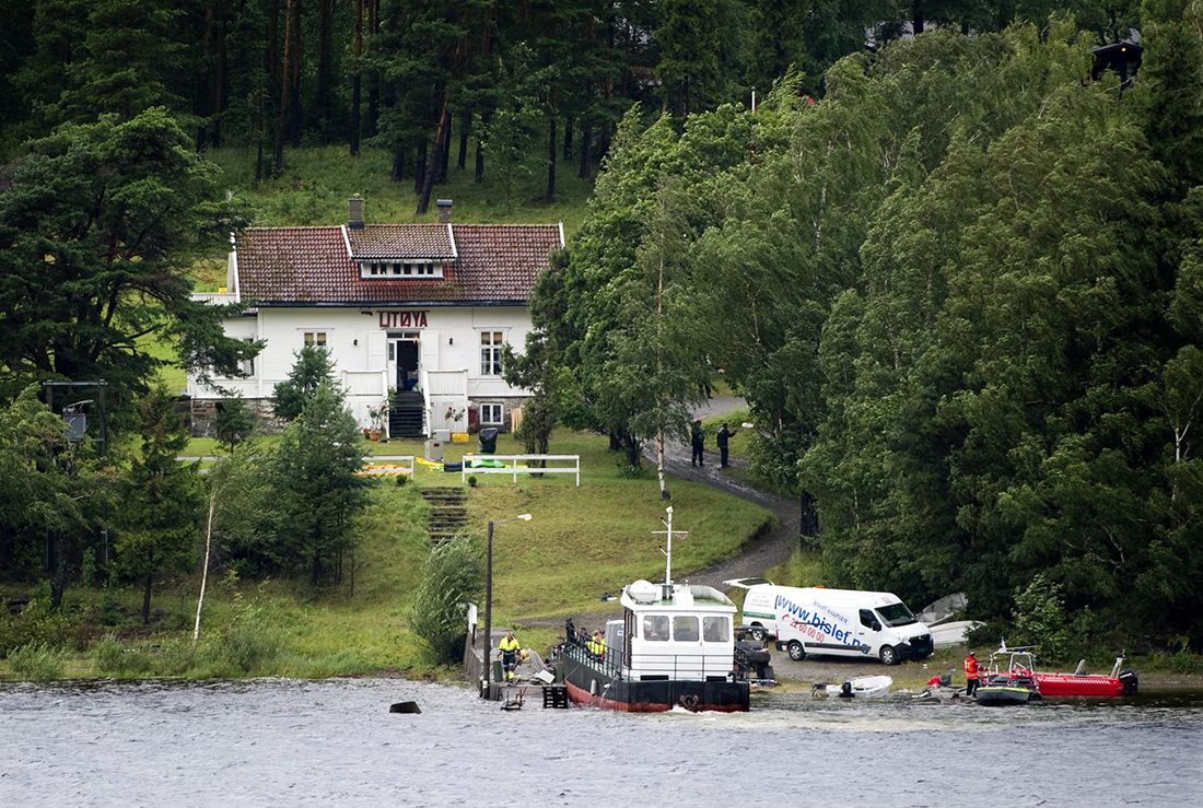 Фото: Jonathan Nackstrand / AFP / Scanpix / LETA Остров Утойя находится в 40 километрах от Осло, 23 июля 2011 годаФото: Björn Larsson Rosvall / Scanpix / LETA Полиция ищет жертв нападения в воде у острова Утойя, 24 июля 2011 годаФото: Kristoffer Oeverli Andersen / AFP / Scanpix / LETA Тела погибших на острове Утойя, 23 июля 2011 годаФото: Truls Brekke / Reuters / Scanpix / LETA Тела погибших искали с помощью водолазов. Утойя, 23 июля 2011 годаФото: Svein Gustav Wilhelmsen / AFP / Scanpix / LETA Спасатели оказывают помощь раненой женщине на берегу острова, 22 июля 2011 годаФото: Fabrizio Bensch / Reuters / Scanpix / LETA Тела погибших на острове Утойя, 23 июля 2011 годаФото: Fabrizio Bensch / Reuters / Scanpix / LETA Тела погибших на острове Утойя, 23 июля 2011 годаФото: Fabrizio Bensch / Reuters / Scanpix / LETA Временный лагерь, разбитый на острове Утойя спасателями, 23 июля 2011 годаФото: Morten Edvarsen / AFP / Scanpix / LETA Спасатели ведут пострадавших в результате стрельбы на острове Утойя, 23 июля 2011 годаФото: Niclas Hammerstrom / Reuters / Scanpix / LETA Остров Утойя, 22 июля 2011 годаФото: Fabrizio Bensch / Reuters / Scanpix / LETA Мемориал памяти погибших на острове Утойя, 26 июля 2011 годаФото: Bjorn Larsson Rosvall / Scanpix / LETA Сотрудник полиции на акции против насилия в центре Осло, 25 июля 2011 года
