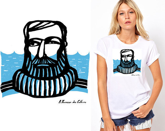 Футболка с Иосифом Бродским из серии «Застой» И не забудьте, что у нас еще есть футболки (и сумки) с Алексеем Германом и Алексеем Балабановым, Андреем Тарковским и Эльдаром Рязановым, Владимиром Высоцким и Иосифом Бродским, Владимиром Маяковским и Сергеем Есениным. И затесавшимся в эту компанию иностранцем Эрнстом Хемингуэем. Их прекрасные графические портреты сделала друг Кольты, художник Варвара Полякова.