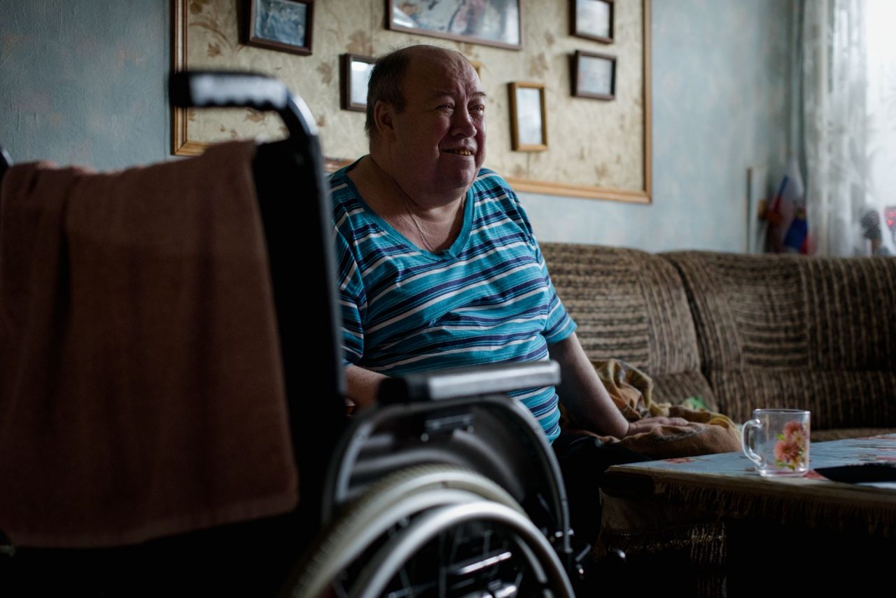 Валентин Николаевич тяжело дышит, перетаскивая ногу с дивана на инвалидное кресло. Его жена Надежда Ивановна сидит напротив и рассматривает торчащий из потолка провод от единственной, но очень яркой лампочки. Люстру Егоровы на днях продали.
