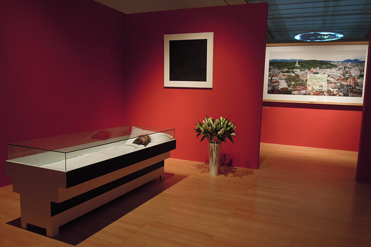 © Наталия Никитина Фрагмент Арт-триеннале-2016. «Вне глобуса». Любляна (куратор Борис Гройс). «Юрий-1». Инсталляция Арсения Жиляева (саркофаг со скульптурой Юрия Гагарина). Фрагмент проекта «Колыбель человечества» — Но Иванов пытался как раз сконструировать тотальность большой картины из своих эскизов. Даже если итоговое полотно оказалось провалом их синтеза…