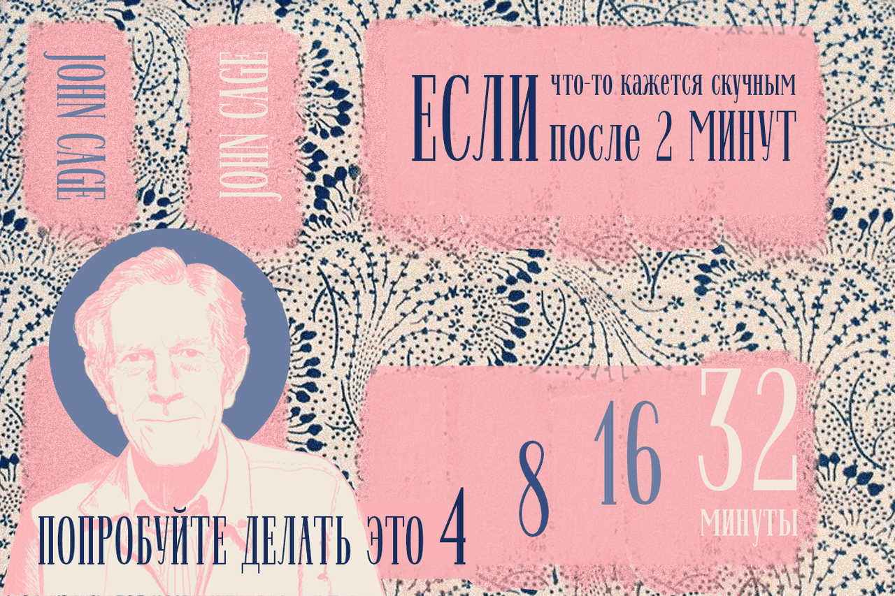«Я не могу понять, почему люди боятся новых идей. Я боюсь старых», — любил говорить Джон Кейдж. Квинтэссенция его самых ценных идей — в новом выпуске рубрики «Обовсём»: уроки осознанности, усиление чувственного удовольствия, а также преодоление скуки, симпатий и антипатий.