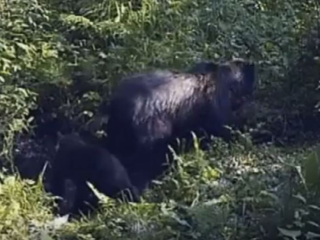 В объектив «фотоловушки», установленной в заповеднике «Столбы», попала семья медведей.