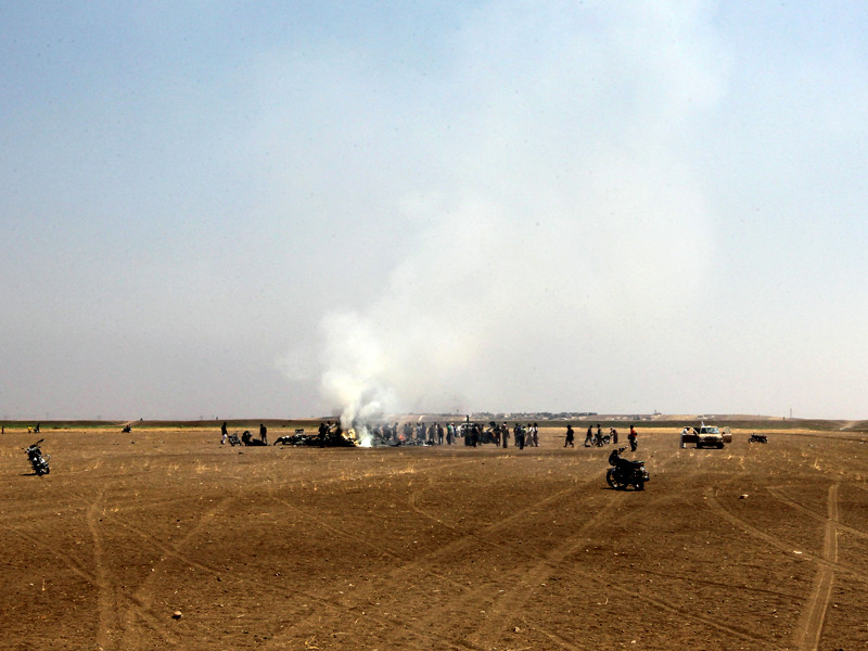 Позже в Twitter-аккаунте Syria Today была опубликована видеозапись горящих обломков вертолета и собравшихся вокруг них местных жителей.