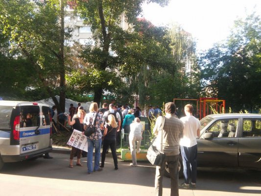 Туда явились рабочие и полицейские, заявившие, что на территории, где голодающие установили тент, планируются работы по озеленению. Мешавших этим работам людей задержали и доставили в ОВД.