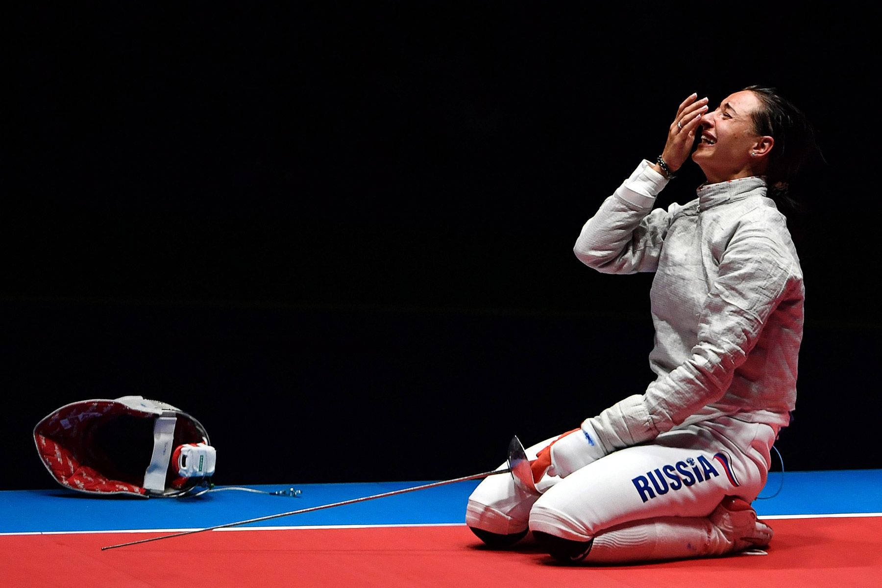 Фото: Fabrice Coffrini / AFP / Scanpix / LETA Россиянка Яна Егорян завоевала золотую медаль в индивидуальных соревнований по сабле, победив со счетом 14:15 свою коллегу по сборной и фаворитку турнира Софью Великую, завоевавшую серебро на Олимпиаде в Лондоне в 2012 году.