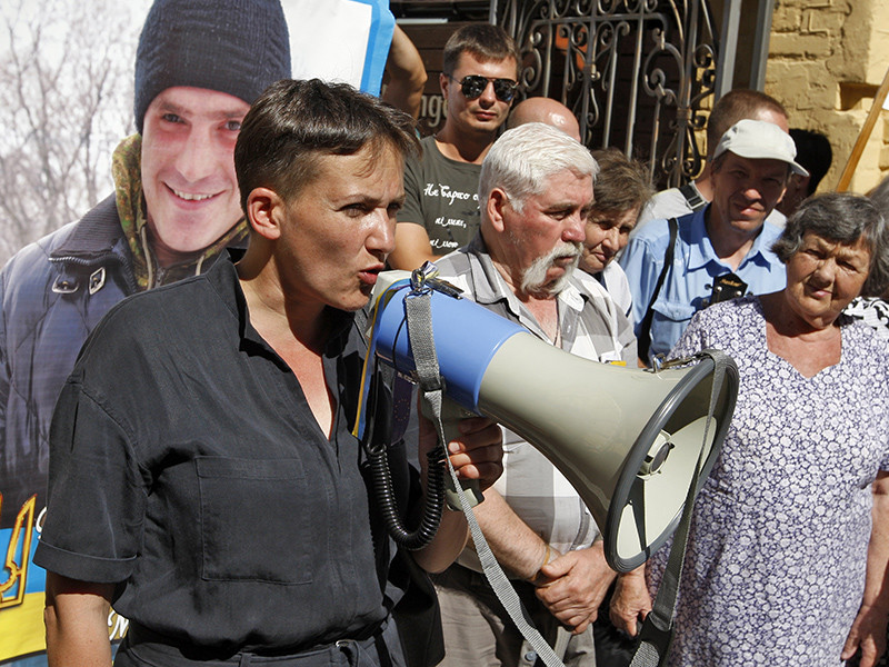 Депутат Верховной Рады Украины Надежда Савченко 8 августа посетила митинг "Не бросай своих", посвященный обмену украинских военных, плененных на Донбассе, возле администрации президента страны. На митинг пришли около ста человек. Савченко потребовала от властей срочно обменять украинцев на сепаратистов, которые находятся в украинских тюрьмах. Депутат заявила, что уже договорилась с самопровозглашенными республиками об обмене двух человек.