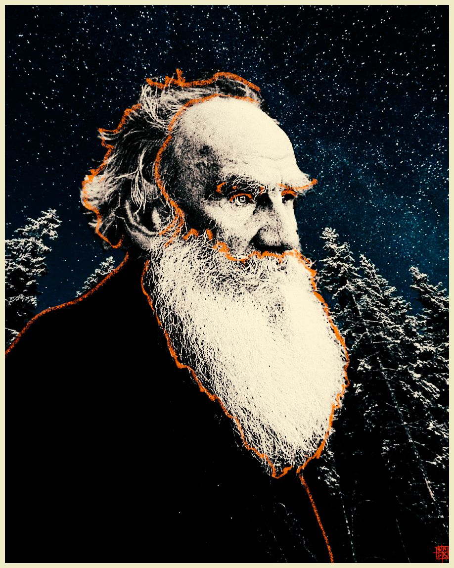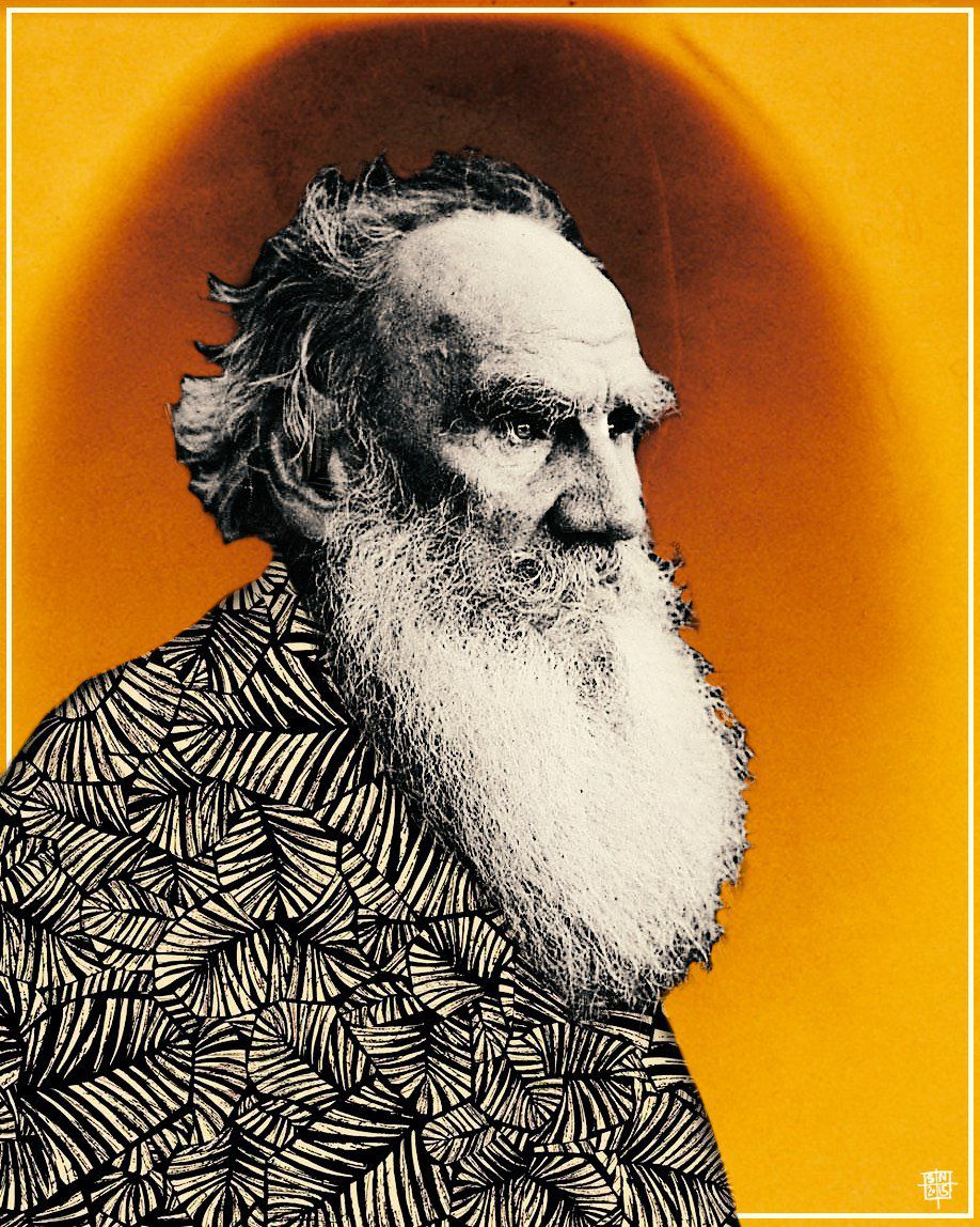 Лев Толстой в юности был кутилой, воякой, хвастуном и жуиром: по его собственному признанию, он убивал и мучил людей, развратничал, проматывал наследство — и гордился всем этим. В старости граф пришёл к «бородатости»: вечным истинам, которые на первый взгляд кажутся банальными, как бородатый анекдот, но при постоянном медитативном повторении оказываются ключами для взлома реальности. Наши постоянные иллюстраторы bojemoi сделали специальную серию коллажей в преддверии дня рождения Льва Николаевича, который в течение месяца будет вашим персональным тренером.