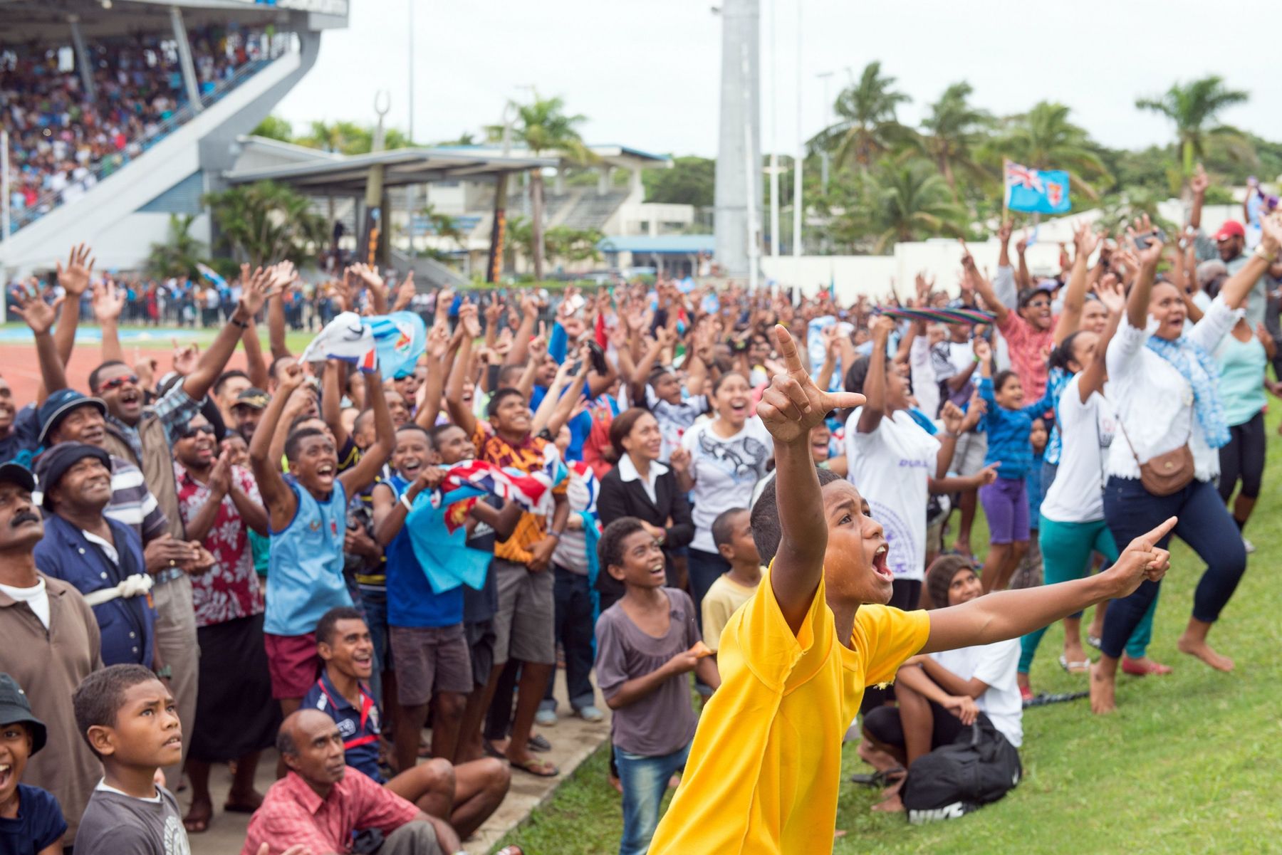 Жители Фиджи радуются первой в истории страны олимпийской медали. Фотография