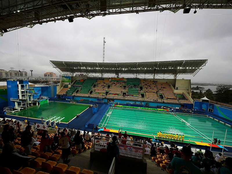 Директор по коммуникациям оргкомитета Олимпиады Марио Андрада пообещал заменить зеленую воду в центре водных видов спорта имени Марии Ленк на чистую. Международная федерация плавания (FINA) заверила участников Игр, что, несмотря на зеленый цвет воды, их здоровью ничего не угрожает.