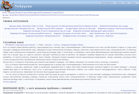 В 2013 году «Либрусек» и другая крупнейшая онлайн-билиотека рунета «Флибуста» под давлением правообладателей прекратили доступ к произведениям 50 российских и зарубежных писателей. По заявлению руководства АЗАПИ, прекращение доступа к книгам на «Флибусте» и «Либрусеке» стало следствием судебных процессов, которые эта организация вела против хостинговых площадок, используемых пиратскими библиотеками.