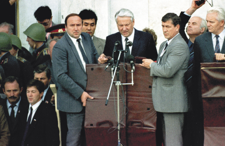 Борис Ельцин, ставший в июне 1991 года президентом России, не имел совершенно никакой защиты. Силовиков в его подчинении не было. В то время даже забора вокруг Белого дома не было: каждый мог подняться от набережной Москвы-реки по широкой лестнице к большим окнам первого этажа и заглянуть внутрь. Милиция не столько охраняла здание Верховного Совета, сколько обеспечивала работу пропускной системы. Милиционеры, дежурившие в Верховном Совете, подчинялись, естественно, своему начальству. И когда в августе 1991-го союзный министр внутренних дел Борис Пуго стал членом ГКЧП, арестовать Ельцина было бы несложно.