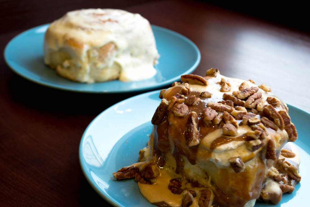 Дрожжевое тесто, глазурь. В пеканбоне — карамельная глазурь.