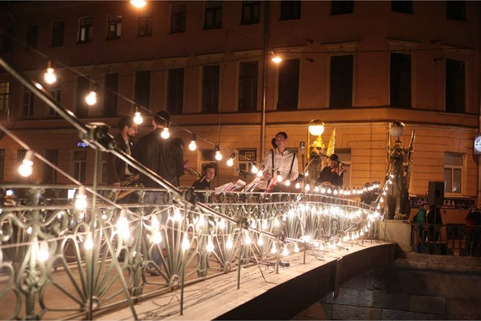 Ленинградские мосты». В течение трех дней, с 19 по 21 августа, на Банковском, Итальянском, Львином и Мало-Конюшенном мостах будет играть живая музыка. В программе — концерты ВИА «Пролетарское танго», джазового оркестра училища им. Мусоргского, Нины Карлссон и других. Расписание можно посмотреть в