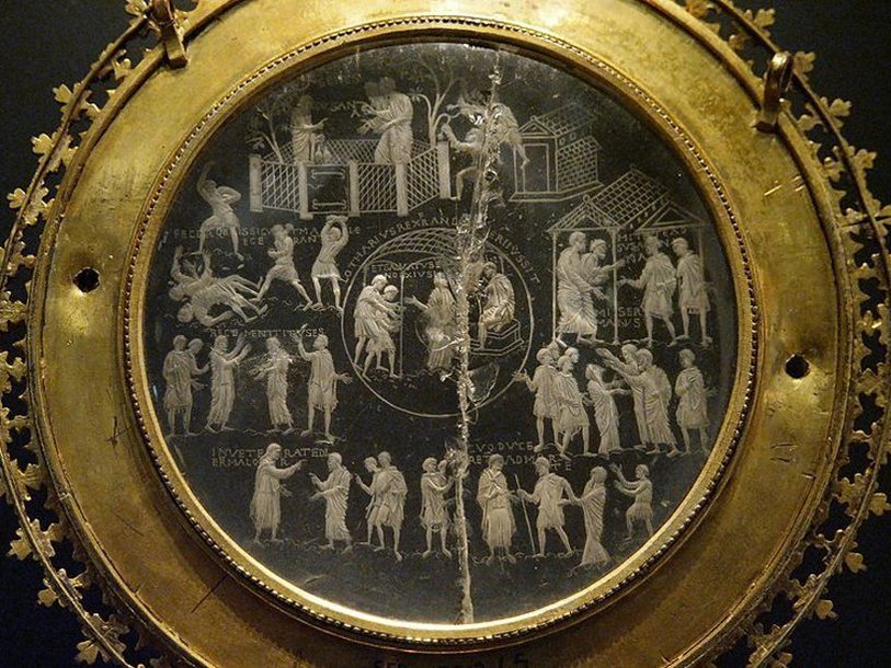 Известно, что диск впервые упоминается в X веке. В то время граф Эйлберт Флоренский оставил его в залог канонику Реймсского собора в обмен на коня. Затем граф пожертвовал хрустальный диск в основанное им аббатство в Волсорте (ныне на территории Бельгии). Как одно из сокровищ аббатства он упоминается в хронике XII века. В 1793 году Волсортское аббатство было разгромлено войсками революционной Франции. Хрустальный диск французы выбросили в реку Мёз (возможно, потому, что он прославлял короля, пусть и древнего). Из реки он был извлечен уже в XIX веке. На диске появилась лишь одна трещина. Находку приобрел англичанин Ральф Бернал, который в 1855 году продал диск Британскому музею.