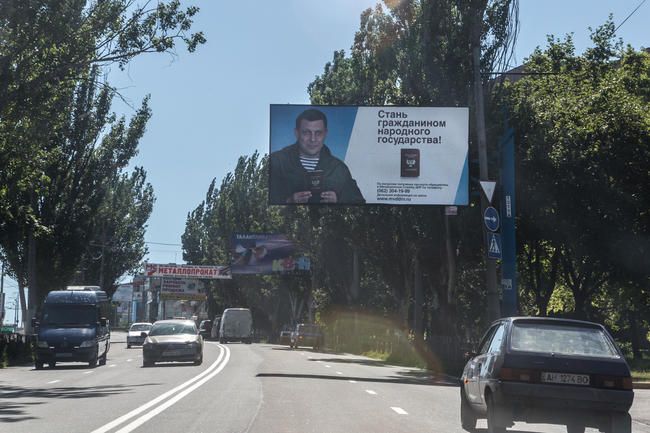 Some 18 months ago, visitors to Donetsk were welcomed by billboards with a call to arms. Today, they have been replaced by a portrait of Zakharchenko with a dark-red DPR passport in his hands. The banners read, “Become a citizen of the people's republic!” and they call on residents to pay their bills and fight corruption.
