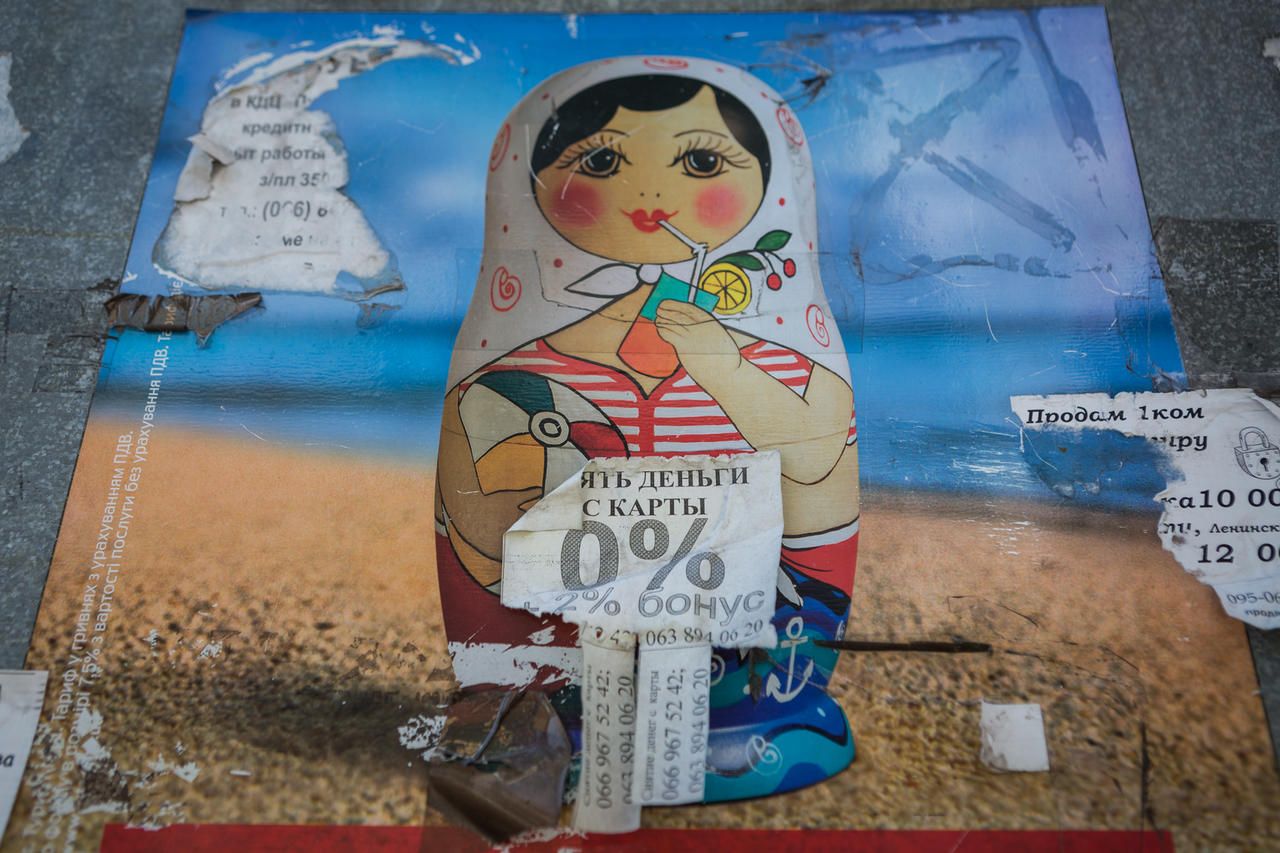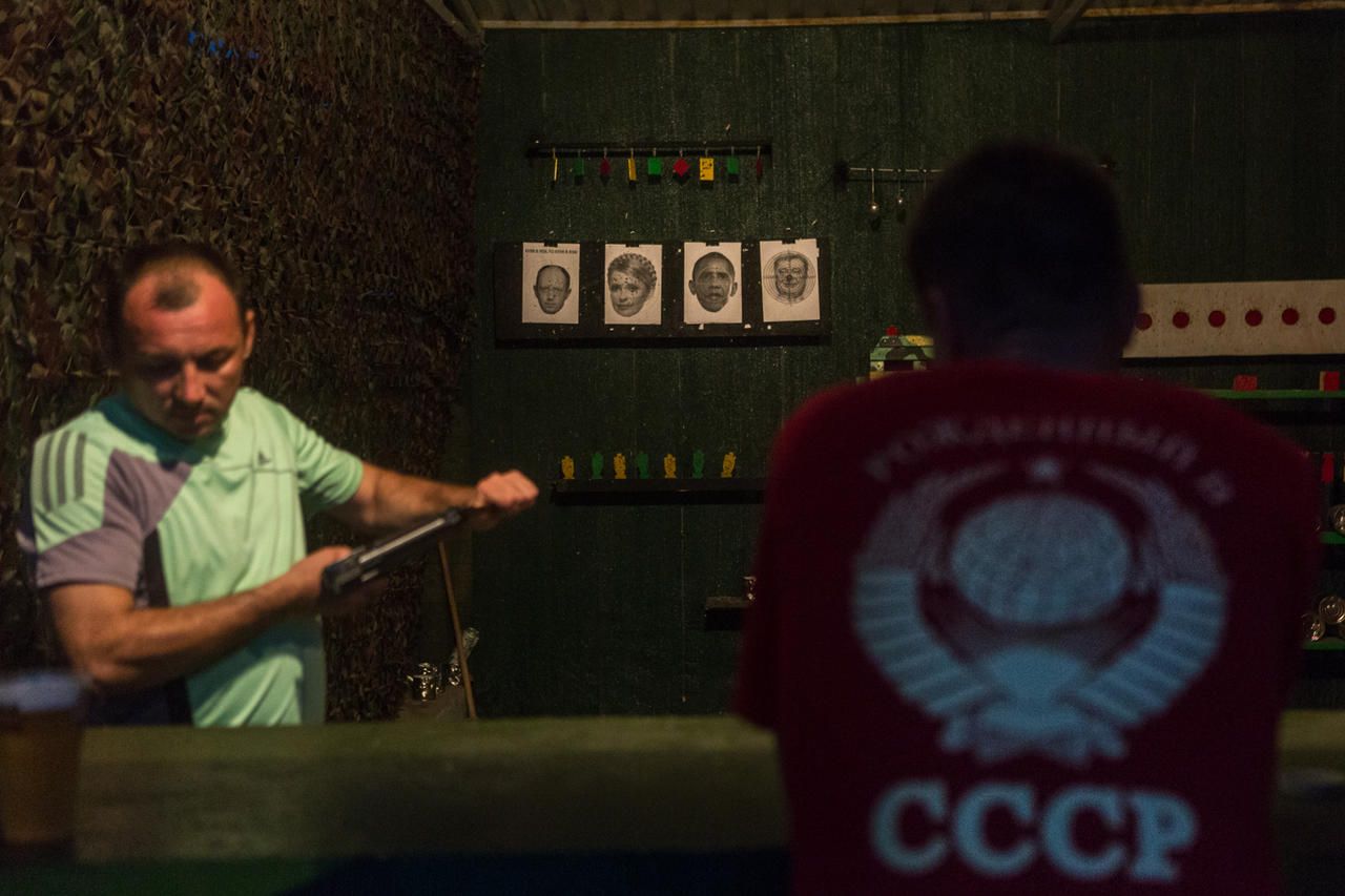 Entertainment is meager, too: there's an amusement park for kids and shooting ranges for grownups. Popular targets are portraits of politicians of post-Maidan influence, like Yatsenyuk, Poroshenko, Tymoshenko, and Obama. "See? Beaten to a pulp," laughs the shooting-range owner, gesturing at the portraits, torn up and distorted. "Although recently an old man came asking for Putin's portrait to shoot at."