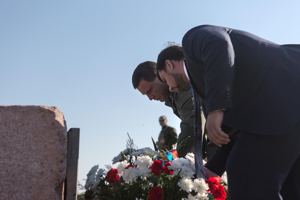 Malaysia Airlines Flight 17 which was downed outside Donetsk on July 17, 2014, shattering into fragments over the distance of 17 kilometers (10.5 miles), but the official location of the disaster was the town of Grabovo. It was here that a memorial was installed (a granite slab with an inscription "To the Innocent Victims of the Civil War") and a memorial service was held two years after the crash, by the head of the self-proclaimed Donetsk People's Republic, Alexander Zakharchenko, and head of the republican parliament, Denis Pushilin. They arrived two days before the ceremony, on July 15, presumably with the purpose of conducting two services on the same day: 13 civilians had been killed in Snezhnoye, a neighboring town, in shelling just two days before the MH17 disaster.