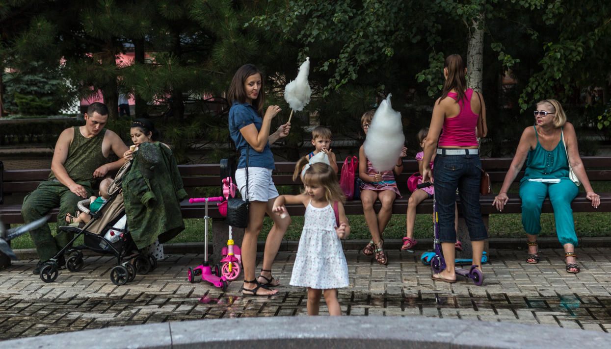The tone of the DPR's official media has changed, too. Instead of the crawling TV caption "The DPR Ministry of Defense is hiring tank crewmen," the main local channel now entertains its audience with a program called “Good News,” which covers youth festivals, newborn animals in the zoo, and bike taxis from Donetsk to checkpoints in the town of Maryinka. In news reports, however, anchors still recycle talking points about Kiev's malicious intentions, breaches of the Minsk agreements, and the moral decay of the West.