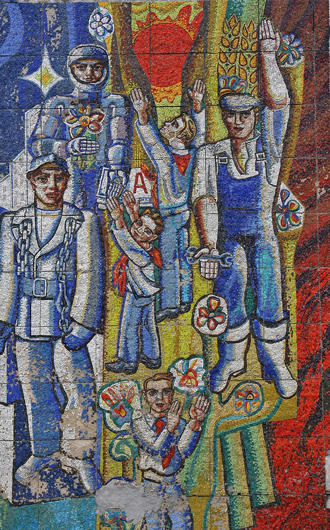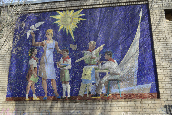Мозаичное панно на здании школы №141, Киев — Но как можно себе представить декоммунизацию в советском до мозга костей Донбассе?
