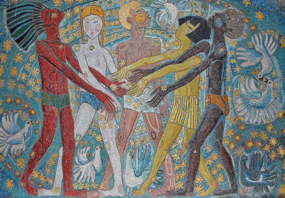 — Мозаиками я занялась раньше, еще летом 2014 года. Фонд современного искусства «Изоляция» переехал из Донецка в Киев, потому что боевики захватили его помещение, многие работы, которые не удалось увезти, оказались уничтожены. Но пока институция находилась в Донбассе, двое искусствоведов, сотрудничавших с фондом, решили сделать каталог мозаичных работ одной из самых известных украинских художниц-«шестидесятниц» Аллы Горской: она много работала в Донецке, там остались самые выразительные из ее монументальных вещей. Кроме прочего, Горская была активной правозащитницей: ее донецкий период совпадает со знаменитыми гонениями на украинских диссидентов, в том числе Стуса, Черновола. Чтобы дать работу родственникам репрессированных, она приглашала их работать помощниками в свою бригаду. В этом парадокс советской монументалистики в Украине: с одной стороны, это была государственная пропаганда, но делалась она руками оппозиционных художников. Это отражалось и на формальной стороне работ. В 60—70-е академическое искусство могло существовать только в рамках советского канона, в рамках соцреализма: ни графики, ни живописцы, ни скульпторы от этого уйти не могли. А у вот монументалистов было хорошее алиби: они работают с твердым материалом (смальта, плитка) и поэтому не могут делать это в натуралистической манере. Именно поэтому в монументалистику в 60-е годы сместился эксперимент. Все, что вытаптывалось и клеймилось в академическом искусстве, тут можно было себе позволить.
