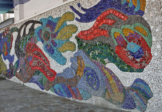 © Анна Медведева Мозаичное панно на стене Дома культуры в г. Фастов, Киевская область — Параллельно с этими проектами ты занимаешься спасением советских мозаик в Киеве…