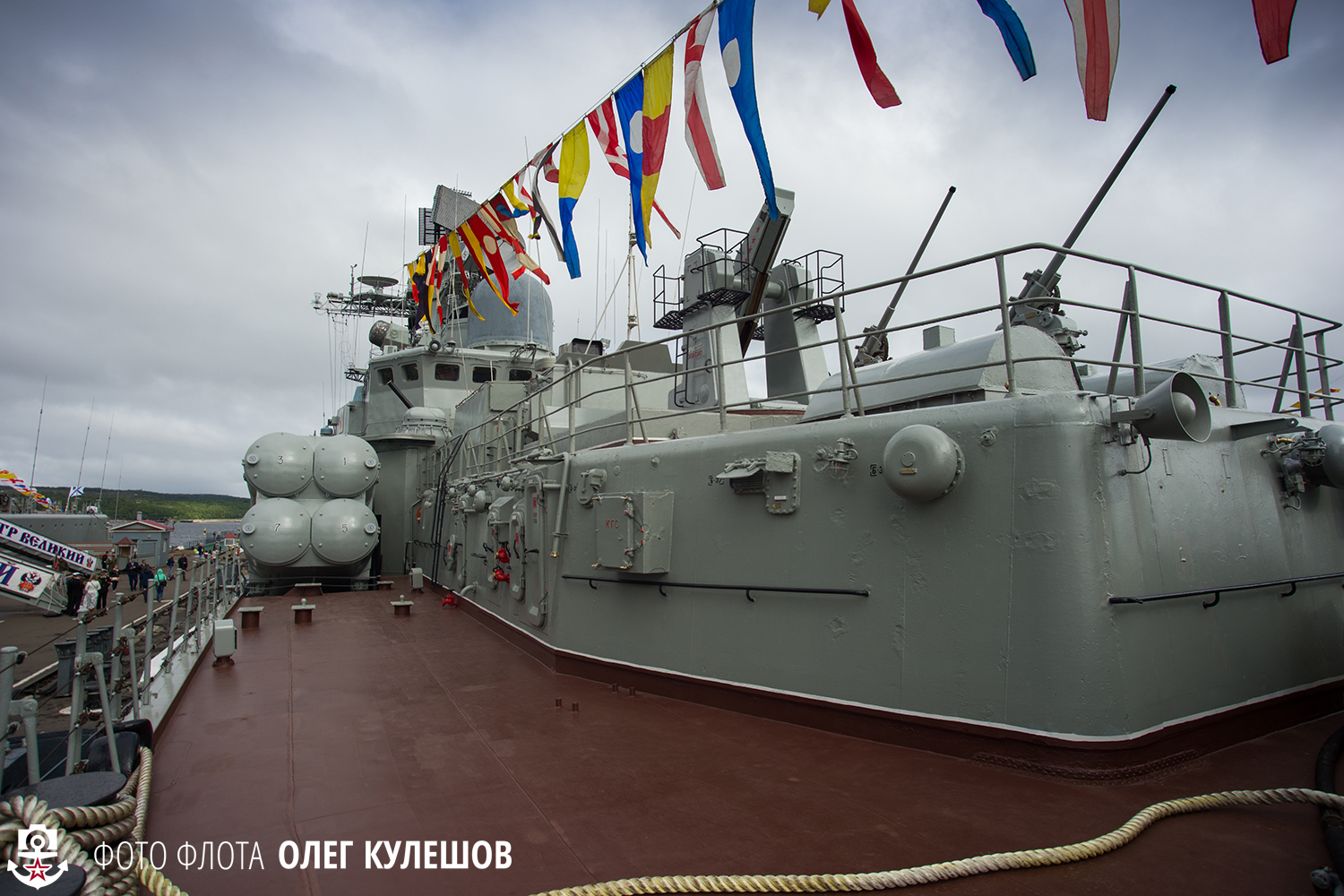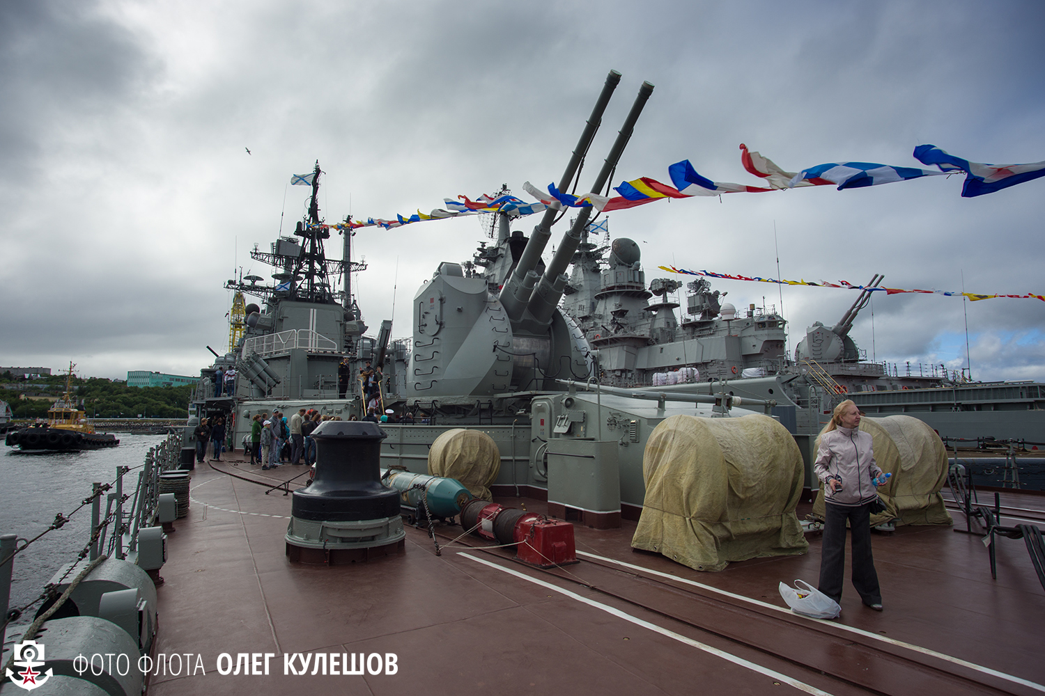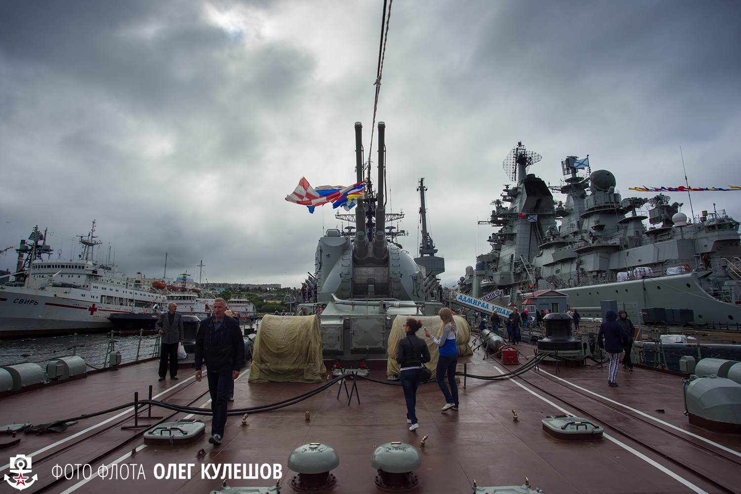 Трудно поверить, но находясь у эсминца я думал - а стоит ли мне подниматься на палубу? Не представляете, как тяжело снимать на борту корабля, когда вокруг много людей! Экипаж или корабелы - другое дело. Их можно построить и попросить принять участие в фотосессии, или сделать вид активной работы. Но все-таки праздник это праздник, поэтому недолго думая решил подняться на борт и присоедениться к оживленной массе радостных североморцев. Не пожалел!