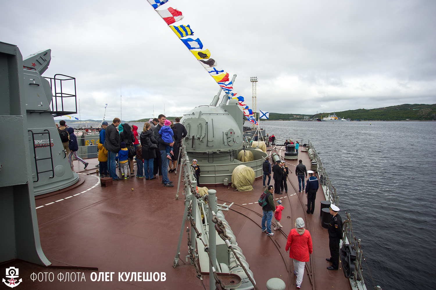 Во время празднования Дня Военно-морского флота в Североморске у жителей столицы Северного флота была уникальная возможность попасть на борт корабля - доступ на эсминец "Адмирал Ушакова" был свободен для всех желающих.