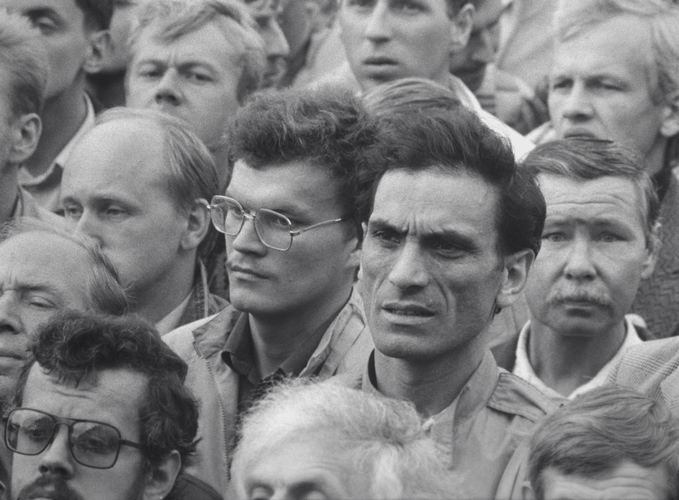 В отличие от «Майдана», в котором разрозненные лица складывались в единый, слаженно текущий поток, «Событие» настойчиво фокусируется на отдельных лицах. И это — лица совсем других людей. Разница между Киевом-2014 и Ленинградом-1991 — во всем. Ленинградцы не слепляются в единую массу, одержимую праведным гневом, они — множество индивидуумов, пришедших не на войну, но на стояние. Их баррикады выглядят бесполезными и декоративными, сами защитники — невинными и неспособными на насилие. Лица удивительно спокойны, наполнены не аффектом, но мыслью. Точнее, какой-то тяжелой думой. Это не революция, но грандиозный акт гражданского неповиновения, демонстрация, напрочь лишенная демонстративности. И в то же время этот триумф выглядит сегодня как поражение — следы будущего термидора видны ясно, крупно, как под микроскопом.