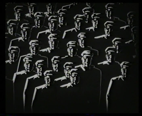 Поток титров и образов несется на зрителя с экрана. Белые медведи, пальмы и капиталисты перемежаются с первобытными людьми, крестьянами и табунами коней. «Мир прекрасен». Перед зрителем появляются море и горы, слоны и жирафы, электростанции и колючая проволока.