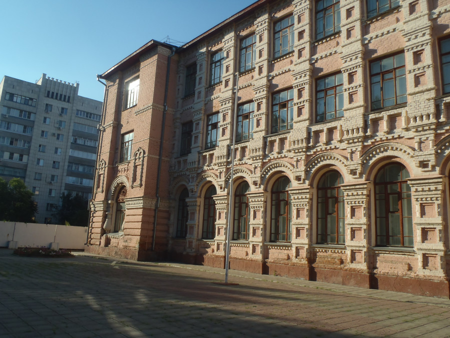 Именно здесь, по мнению многих моих знакомых, заканчивается город. Это трёхэтажное здание из красного кирпича с залом для выступлений и благотворительных концертов на первом этаже и конторами на остальных. Собственно говоря, это один из первых светских культурных центров левобережья. Прежде там имелся большой сад и приусадебный участок. В настоящий момент здание школы зажато между заброшенной стройкой и цехами авторемонтного завода.
