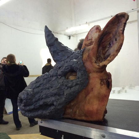 Александр Плюснин. Индрик. Выставка «Изжога». Галерея «Электрозавод». 2015 Что делать с работами после того, как они сделаны и показаны, — общая проблема почти для всех художников в России, не только скульпторов. Если работы не продаются, они скапливаются дома или в мастерской. Но отсутствие достаточного места и неудачные условия хранения работ негативно отражаются на процессе создания новых произведений. Если живописью еще как-то можно заниматься в небольшом пространстве, то скульптурой просто невозможно. Некоторые работы, которые долго пылятся на полках мастерской, могут просто исчезнуть, если их в какой-то момент не переделают в новую работу.