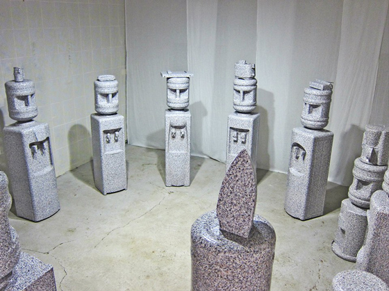 © Александр Повзнер Александр Повзнер. Кулеры-идолы. Выставка «Брутто-2». Воронежский центр современного искусства. 2014 С другой стороны, скульптура в галерейном пространстве управляет взглядом зрителя, художник заранее знает, как и с какой стороны ее будут рассматривать. С работой в открытом пространстве это предугадать уже сложнее. Иван Горшков создал работу для проекта в парке музея-усадьбы Д.В. Веневитинова (Воронежская область). Так как проект был тесно связан с историей пространства, художник поставил целью «гармоничное сочетание современной скульптуры и старинного парка». Были созданы работы в выдержанной стилистике автора, но с учетом природного окружения. «Мне хотелось показать широкой общественности, — вспоминает художник, — что современное искусство — это не только “шок, скандал и говно в баночке”, а что оно может выполнять и “созидательную” функцию, освежать старинный парк, а не “разрушать” его». Такие задачи и проекты на порядок тяжелее, но и интереснее, чем создание работы для галерейного пространства.