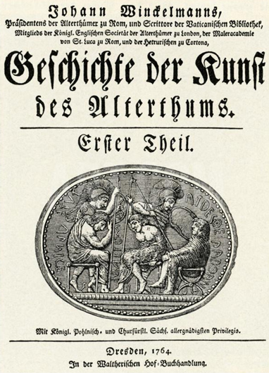 «История искусства древности» И.И. Винкельмана, впервые опубликованная в Дрездене в 1764 году, считается первой истинной «историей искусства» [i]. Винкельман поднял историю искусства на новый уровень: отойдя от описания жизни художников и выполненных ими заказов, он попытался провести систематический стилистический анализ, историческую контекстуализацию и даже иконографический анализ, особенно если учесть его работы о ювелирных украшениях и прочих древних реликвиях, а также трактат о визуальной аллегории [ii]. Безусловно, Винкельман также помог разработать важные инструменты критики в целом: в эссе 1759 года о Бельведерском торсе, Аполлоне и Лаокооне (см. [iii], [iv]), которое включено в «Историю», он произвел нечто, что представляется нам необычно длинным для своего времени, сфокусированным описанием отдельного произведения искусства, нечто, что можно обернуть как в эстетико-этическую оценку, так и в историко-критический анализ. Огромный и, бесспорно, формирующий вклад Винкельмана в становление истории искусства как интеллектуального занятия и научной дисциплины рассматривался с различных точек зрения (см. [iii]). Выражаясь кратко, «История» Винкельмана впервые интегрировала методы-близнецы, которые впоследствии применялись в профессиональной дисциплине «история искусства», а именно методы «формализма» и «историзма». Винкельман исследовал формы греческо-римского искусства и все сопутствующие факты, обращаясь к роли климата, который, как он считал, подходил для объяснения формы в историческом контексте.