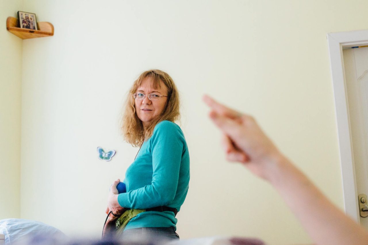 «Я заметила, что если таких тяжелых не отдают в детские дома, то тогда их очень-очень любят», — рассказывает социальный работник Маша. Одновременно она дает лекарство своему подопечному Владу, который лежит на кровати и делает вид, что хочет Машу укусить.