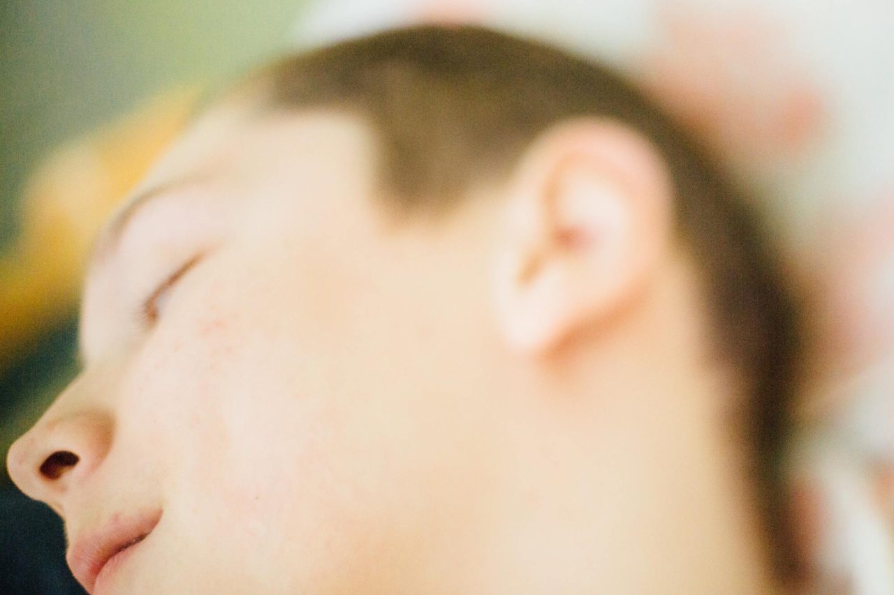 в реабилитационные центры берут детей, с которыми можно что-то делать, а с такими, как наши, которые ничего не могут, никто заниматься не хочет— Если Владу нужно, чтобы с ним постоянно сидели-обнимались и болтали, он такой веселый подросток, то Саше общения требуется меньше, ему с нами не очень легко, но при этом оно ему нужно. У Саши аутизм. Он очень трогательно показывает всегда, если ему нравится то, что ты делаешь, как ты читаешь или на прогулку собираешься его вести. Он всегда демонстрирует, что ему хорошо с тобой. Он берет меня за руку, близко подходит, смотрит в глаза, улыбается. Есть много таких моментов, которые ни с чем не спутаешь, — Маша сидит с Сашей за столом и помогает ему рисовать по точкам. Саша улыбается.