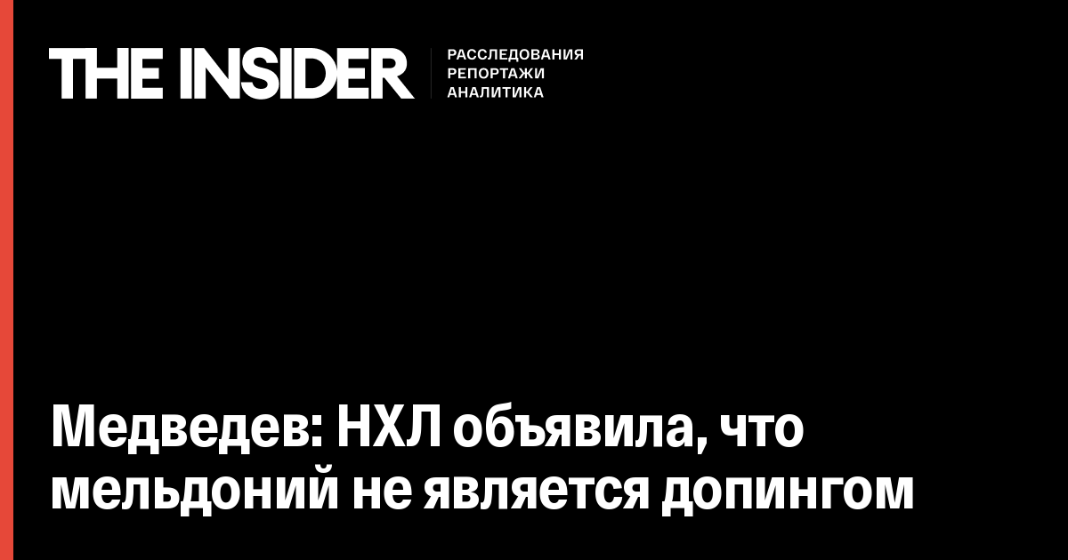 «Всеми признано, что мельдоний не допинг, а восстановительное средство. НХЛ вообще своим игрокам сказала, что это не допинг, и разрешила спортсменам его использовать», — рассказал Медведев.
