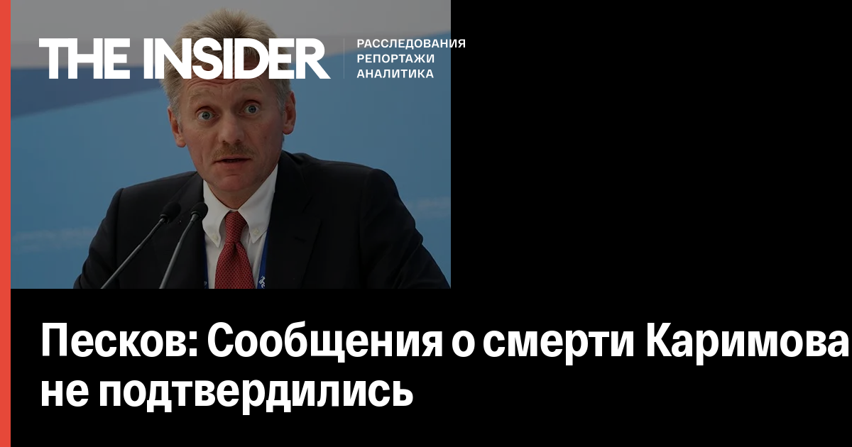 Сообщения СМИ о смерти президента Узбекистана Ислама Каримова, появившиеся минувшей ночью, не нашли своего подтверждения. Как передает ТАСС, об этом заявил пресс-секретарь Владимира Путина Дмитрий Песков.