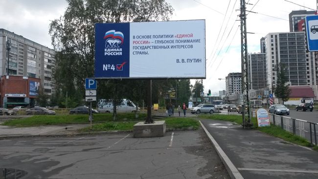 В конце августа в Петрозаводске установили баннер «Единой России» с цитатой Владимира Путина. Причем баннер оказался на месте, предназначенном для парковки людей с ограниченными возможностями.