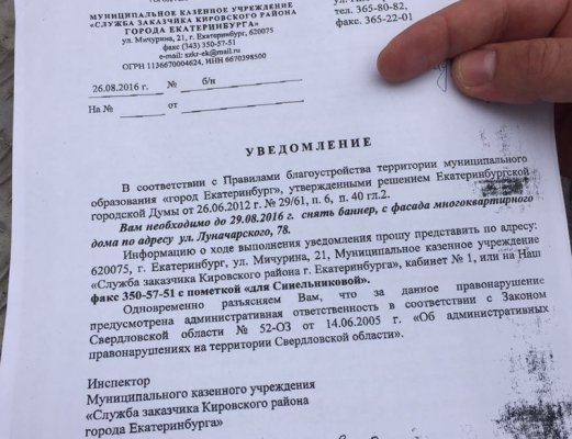 В Екатеринбурге неизвестные при поддержке полиции сорвали пять агитационных баннеров «Справедливой России». Об этом сообщает «URA.Ru» со ссылкой на депутата Екатеринбургской городской думы от «Справедливой России» Александра Караваева. По его словам, одна из таких акций сопровождалась нападением: когда к зданию на улице Луначарского подъехала автовышка, а собственники попытались не дать сорвать баннер, одну из женщин, забравшихся на вышку, схватили за горло. Рабочие показали представителям «Справедливой России» «какую-то бумажку, подписанную службой заказчика», — приводит издание слова Караваева.