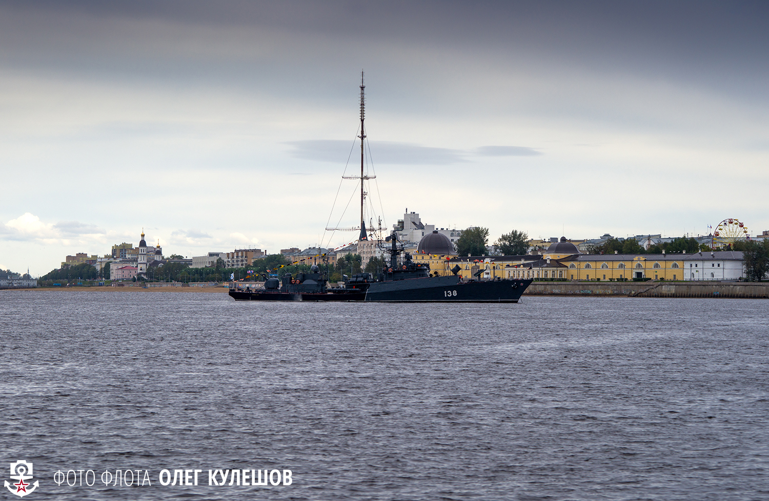 Командующий Северным флотом вице-адмирал Николай Евменов совершил обход парадного строя кораблей на катере "Беломорец" и поздравил экипажи с памятной датой.