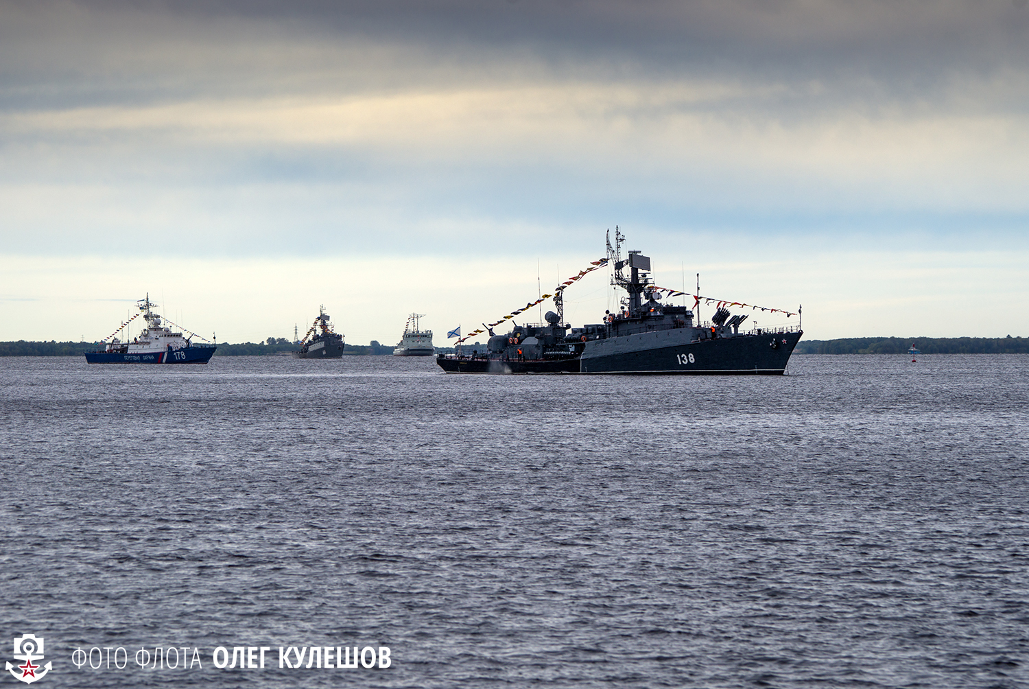 В военно-морском параде участвовали малые противолодочные корабли проекта 1124М "Нарьян-мар» и "Онега", дизель-электрическая подводная лодка "Липецк", пограничный сторожевой корабль "Сыктывкар" и ледокол Росморпорта "Капитан Евдокимов".