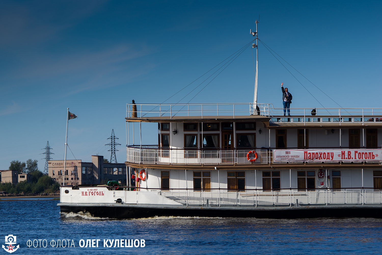 2. Пароход предприятия zvezdochka_ru "Н.В. Гоголь" в этот момент катал по Северной Двине ветеранов Северных конвоев.