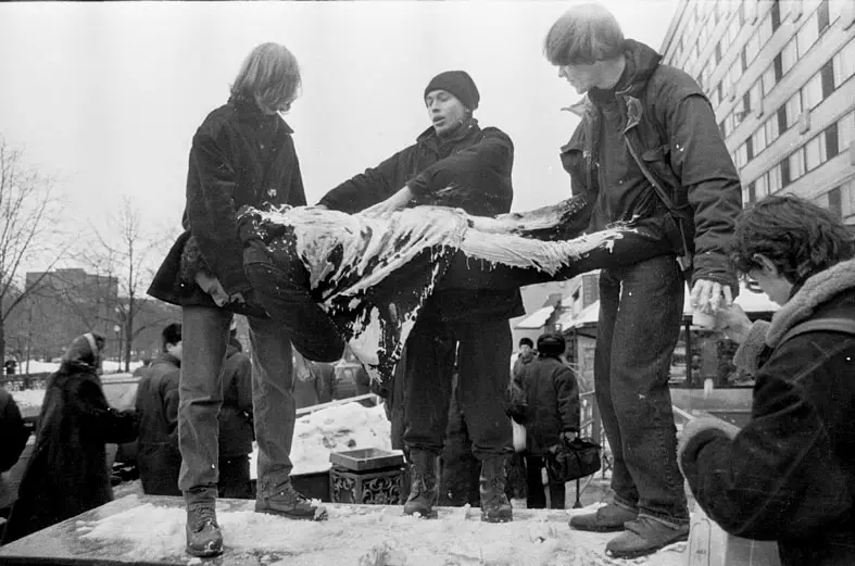 Сопоставим два издания: здесь — гордая и независимая «Гилея», с основателем которой, Сергеем Кудрявцевым, Бренер уже несколько раз смертельно, с публичными оскорблениями, ссорился (в эти периоды его книги издавали другие люди, в частности и сам Павленский с супругой), а затем мирился, что вселяет определенную веру в пошатнувшийся на ниве лайков и шеров старорежимный институт дружбы. Там — книжный гигант АСТ, а точнее его хищная до чужого успеха серия «Ангедония». Тут — под четыреста страниц шквального огня по штабам, там — восемнадцатый кегль, призванный размазать содержимое по хоть какому-то подходящему для продажи объему целлюлозы; причем, оригинального материала примерно треть — и это не в меру занудное интервью Павленского о своем творческом пути, остальное — публиковавшаяся в начале года на Colta.ru теоретическая статья Петра Павленского и стенограмма его разговоров со следователем. И, конечно же, фотографии — бесконечно скверно подготовленные к печати, зато избыточно документирующие акции звезды политического перформанса. От Бренера, кроме черно-белых снимков того самого московского периода, вообще, похоже, не останется фотографий — даже всезнающий Google подсовывает низкокачественные мыльные съемки, сделанные как будто украдкой, — то ли дело фотогеничные муки Петра.