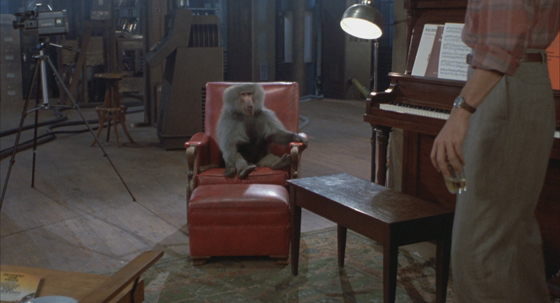 «Сумасшедший ученый» Сет Брандл (Джефф Голдблюм) может перемещать только неживые предметы, вещи. Он сам исключен из этого перемещения, не раз подчеркивается, что он слишком статичен: не умеет общаться, нечасто ходит на свидания, носит странную цивильную одежду-форму. Человек в футляре, списавший себя с Эйнштейна, даже дома ходит в костюме, хотя имеет вид не столько торжественный (вечная готовность к официальному кадру, сюда же — тема Нобелевской премии), сколько неряшливый (лежит на кровати одетый). Личная статичность помечается и отвращением к транспорту: Брандла тошнит в автомобиле.