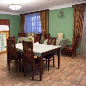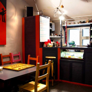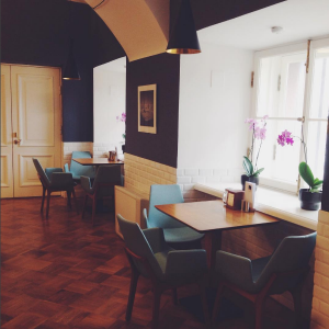 Это кафе напоминает обновленную советскую столовую в стиле модерн: деревянные стулья с высокими спинками, плотные тюли, антуражные шкафчики. Здесь обычно тихо и спокойно, работает свободная точка Wi-Fi, можно собираться большими компаниями. Угощают десертами и выпечкой, к которым предлагают травяной и классический чаи или крепкий кофе.