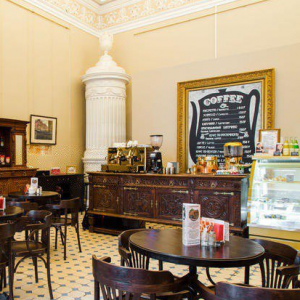 Здесь царит атмосфера ретро: антикварная мебель, старенькие радиоприемники и другие антуражные вещи, джаз по выходным. Из окон можно любоваться видами реки Мойки и Летнего сада. В кафе утверждают, что это место для ценителей тонкой красоты, людей старой культуры. Угощают кофе разных способов приготовления, классическими пирожными и ризо с маком. Также в меню — салаты, паста и куриная грудка с розмарином. Вход свободный, но за столик необходимо внести депозит в 350–500 рублей.